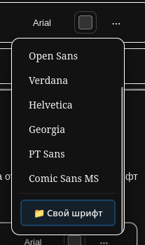 Как можно заметить на первый взгляд, кнопка шрифтов теперь не просто отображает надпись "Шрифт", а отображает активный шрифт который сейчас используется
