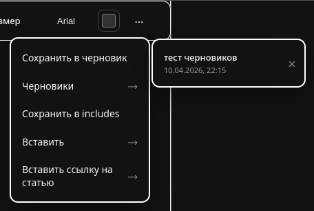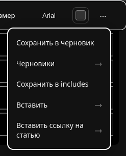При нажатии на дополнительное меню панели форматирования можно увидить кнопку "Сохранить в черновик"